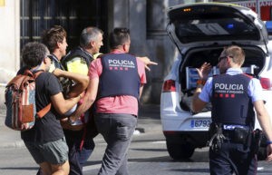 Обычно на Рамбле полицейских немного – в этом резкий контраст, например, с Италией, где буквально на каждом шагу вооружённый полицейский. В Барселоне более расслабленная атмосфера. Но очень быстро на месте происшествия оказывается много полицейских, машин скорой помощи, два вертолета.