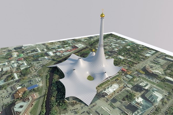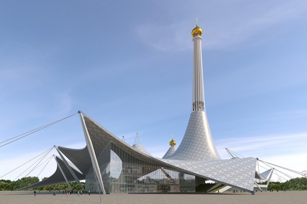 Предложение архитекторов состоит в том, чтобы превратить недостроенную телебашню в часть храма с куполом на вершине. При этом остальная часть церкви должна покрыть практически все пространство на набережной. Если бы проект был реализован, это была бы самая высокая церковь в мире. На данный момент это звание принадлежит Ульмскому собору в Германии (161,5 метра). Самый высокий храм в России — Петропавловский собор — имеет высоту 122,5 метра. Высота храма Христа Спасителя с куполом и крестом составляет 103 метра. Общая высота памятника «Родина-мать зовет» на Мамаевом кургане в Волгограде — 85 метров. Высота обелиска «Монумент Победы» на площади Победителей в Парке Победы на Поклонной Горе в Москве составляет 141,8 метра.