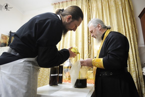 Освященное миро по благословению Святейшего Патриарха раздается в епархии Русской Православной Церкви и используется при совершении Таинства Миропомазания, а также при освящении храмов.