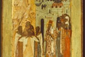 Роскошный убор Владимирской иконы Божией Матери, который она имела по известиям летописей, также не свидетельствует в пользу возможности ее расположения в алтарной преграде в XII в.: «И въскова на ню боле тридесяти гривенъ золота, кроме серебра и кроме дорогаго камения и жемчюгу, и украсивъ ю, постави въ ц(е)ркви своеи в Володимери». Но многие из выносных икон позднее укреплялись именно в иконостасах, как и Владимирская икона в Успенском соборе в Москве, первоначально помещенная справа от царских врат: «И внесши ю <икону> в преимнитый храм славнаго ея Успения, иже есть великая Соборная и Апостольская церкви Русская Митрополiя, и поставиши ю в киоте на десной стране, идеже и доныне стоит зрима и поклоняема всеми» (См.: Книга Степенная. М., 1775. Ч. 1. С. 552).