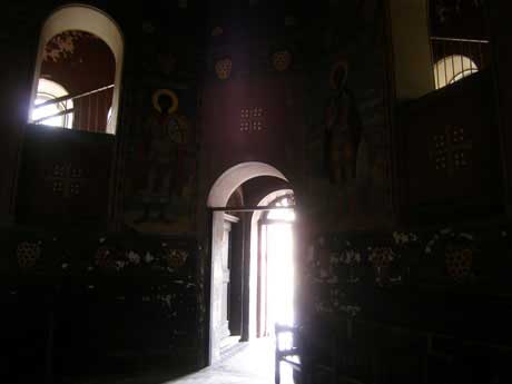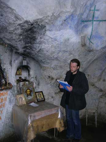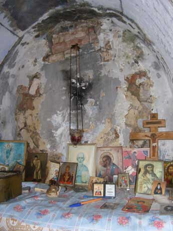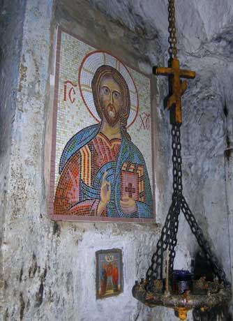 В келье, где почти две тысячи лет назад молился Симон Кананит, сумрачно и сыро, отовсюду капает вода. На стенах мозаики, росписи, иконы. На столике лежит Акафист апостолу. Кто-то приходит сюда помолиться, следит за порядком.