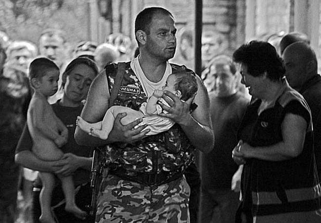 Я стою на газоне и смотрю на рослых, грязных ополченцев. На их лица. Здоровые кавказские мужики плачут. Несут детей и плачут. А боковым зрением улавливаю странное движение справа: люди расступаются. И я вижу – в ста метрах от меня, на освободившийся зеленый газон, ополченцы аккуратно складывают детские тела. Я помню девочку с длинными волосами и черной дырой на затылке. Худенькую, в одних трусиках. В спортзале, где держали заложников, было очень жарко. Дети снимали одежду. Эта девочка тоже очень хотела пить. Она так и не напилась перед смертью. Ей было лет 8. Она и сейчас у меня перед глазами.