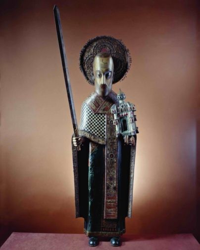 Один из традиционных образов, который любили создавать мастера деревянной скульптуры – святитель Николай. Причем изображали святого чудотворца в особой иконографии с мечом и храмом в руках. Такой извод называется «Святитель Николай Можайский» или «Никола Можайский».