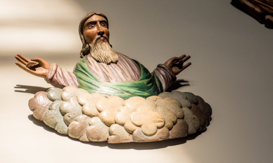 – Чаще всего изображения Бога Отца были частью композиции, например в Распятиях, могли помещаться над Царскими Вратами на иконостасе, – говорит Ксения Зубакина. – Но есть в нашей коллекции изображения Саваофа, предстающие как отдельный сюжет. Например, грандиозная скульптура из города Лысьвы XVIII века.