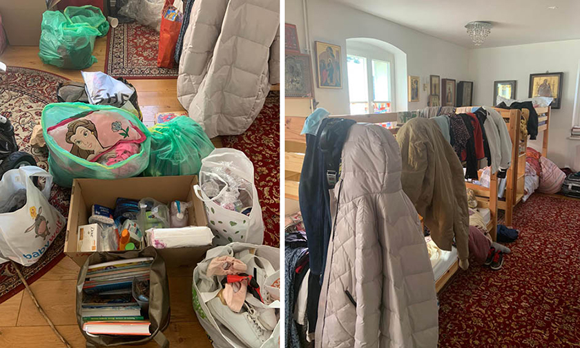 Чтобы разместить всех, кровати поставили в домовом храме. Пришлось переставлять кровати из гостевой комнаты, а там делать склад вещей для приехавших. Прихожане откликнулись на просьбу о помощи, на первое время у беженцев есть одежда, а у монастыря запас продуктов для них. Отец Даниил координирует помощников.