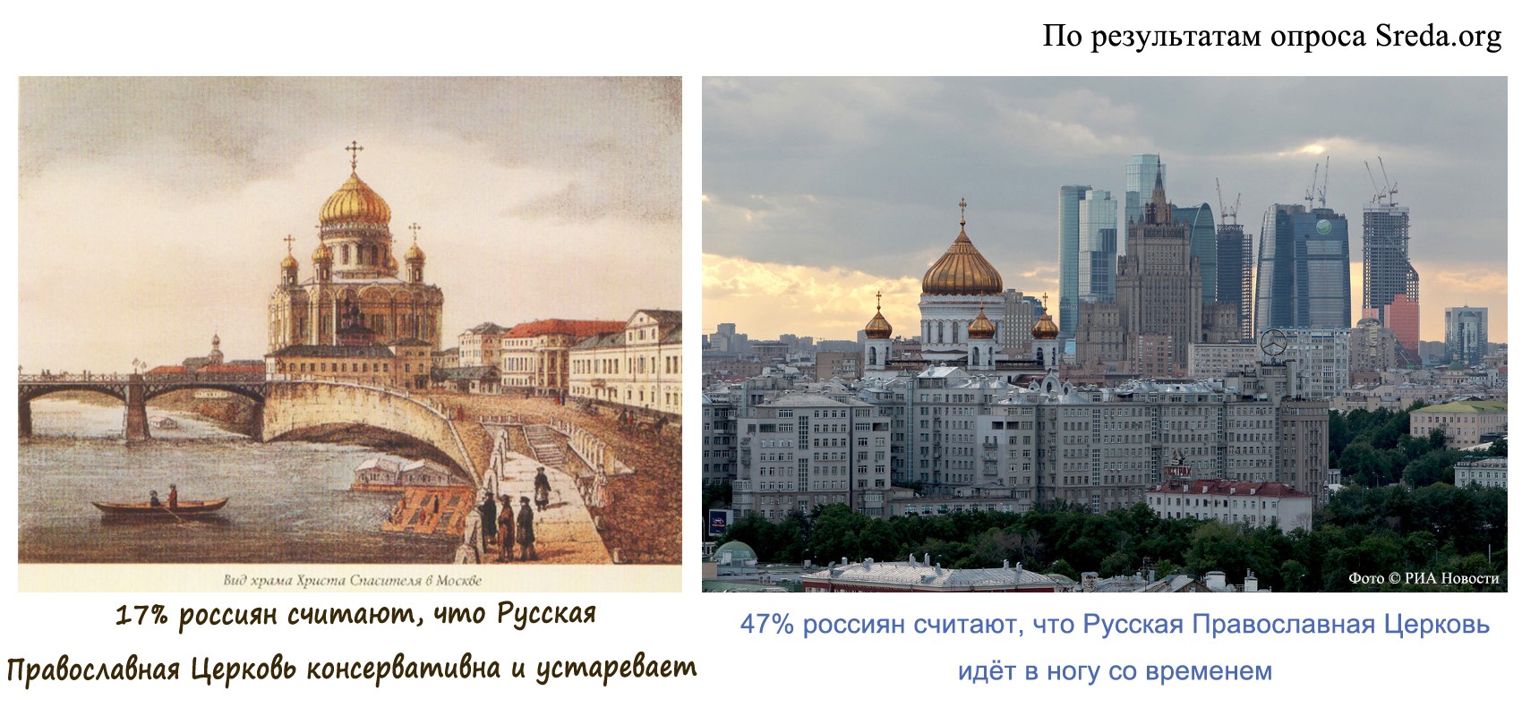 Опрос некоммерческой исследовательской службы "Среда" - "Русская Православная Церковь: устаревающая или современная?"