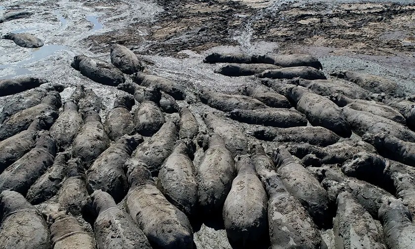 Бегемоты застряли в пересохшем канале в дельте реки Окаванго. Африка страдает от засухи. Фото: Монирул Бхуйян/AFP/Getty Images
