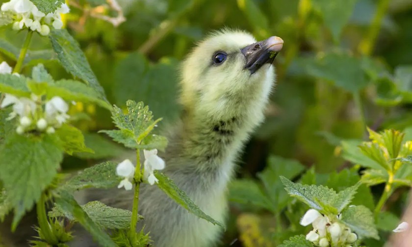 Как прекрасен мир! Птенец казарки выглянул из листвы ранним утром. Фото: Джеймс Джаггер/Alamy Live News