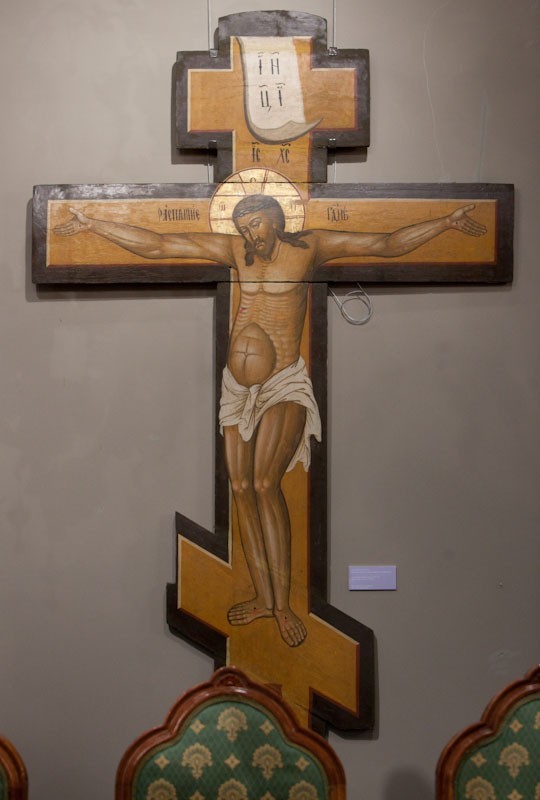 Верхний ряд иконостаса. Крест-Распятие с предстоящими в медальонах. Предстоящие: вторая половина XVIII века. Крест-Распятие: конец XVIII века. Музей русской иконы (Москва).