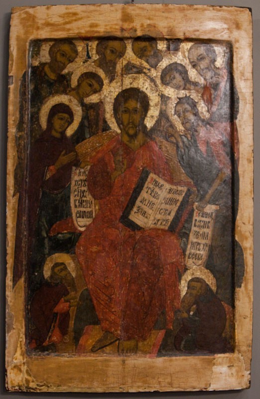 Деисус с предстоящими святыми и припадающими преподобными Зосимой и Савватием Соловецкими. Конец XVI века, Русский Север. Собрание В.М.Момота (Москва)