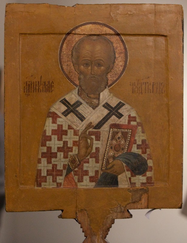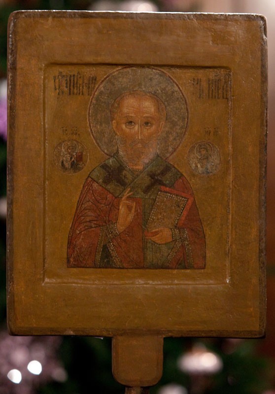 Икона выносная двусторонняя. Богоматерь Умиление – Святитель Николай, архиепископ Мирликийский. Около сердины XVII века. Среднерусские земли. Дерево, темпера. Происхождение не установлено. Находилась в собрании В.С.Самсонова. Поступила в музей в сентябре 2007 года от вдовы коллекционера. Реставрирована до поступления в коллекцию. Инв. № ЧМ-332.