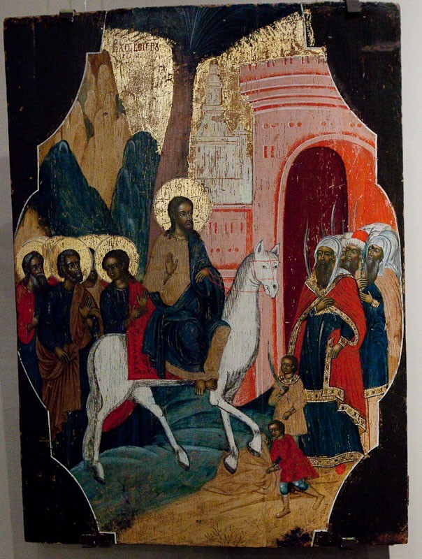 Вход в Иерусалим из праздничного чина иконостаса. Первая половина XVIII века. Центральное Поволжье. Частное собрание (Москва).