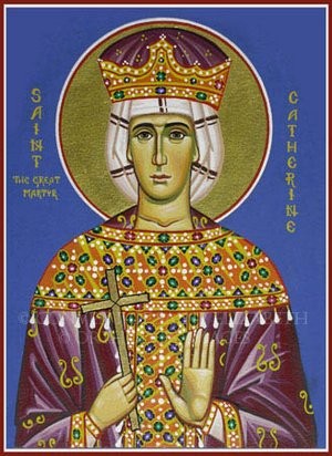 Память великомученицы Екатерины совершается 7 декабря. Святая жила в Александрии Египетской в начале IV в. Будучи дочерью правителя Александрии, она получила блестящее образование, к тому же была необыкновенно красива. Узнав от духовника своей матери о Христе, Екатерина приняла крещение и дала обет целомудрия. При дворе императора Максимина, который требовал, чтобы святая отреклась от Христа, Екатерина победила в ученом споре 50 лучших ученых и склонила их к вере. С честью претерпевшая мучения, Екатерина была обезглавлена. По преданию, ее тело было перенесено ангелами на гору Синай, где в VI в. были обретены ее мощи.