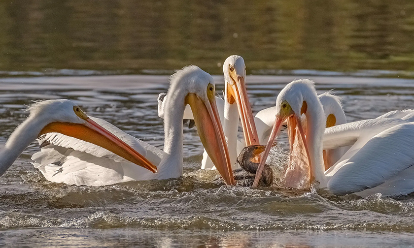 «Улов есть? А если найдем?» Группа пеликанов пытается отнять добычу у баклана в Сан-Хосе, Калифорния. Photograph: Wei Lian/Solent News & Photo Agency/Solent News