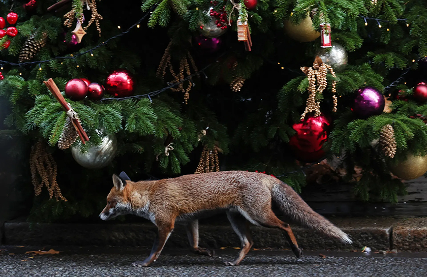 «Есть ли тут подарок для меня?» Лиса у Рождественской елки на Даунинг-стрит. Photograph: Andy Rain/EPA