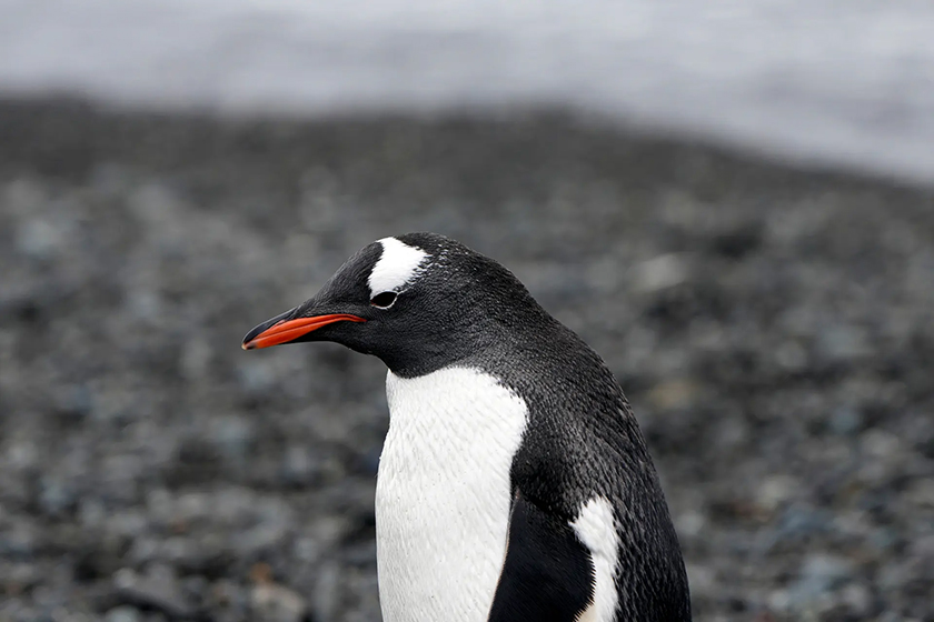 Задумчивый пингвин на пляже острова Кинг-Джордж в Антарктиде. Photograph: Jorge Sáenz/AP