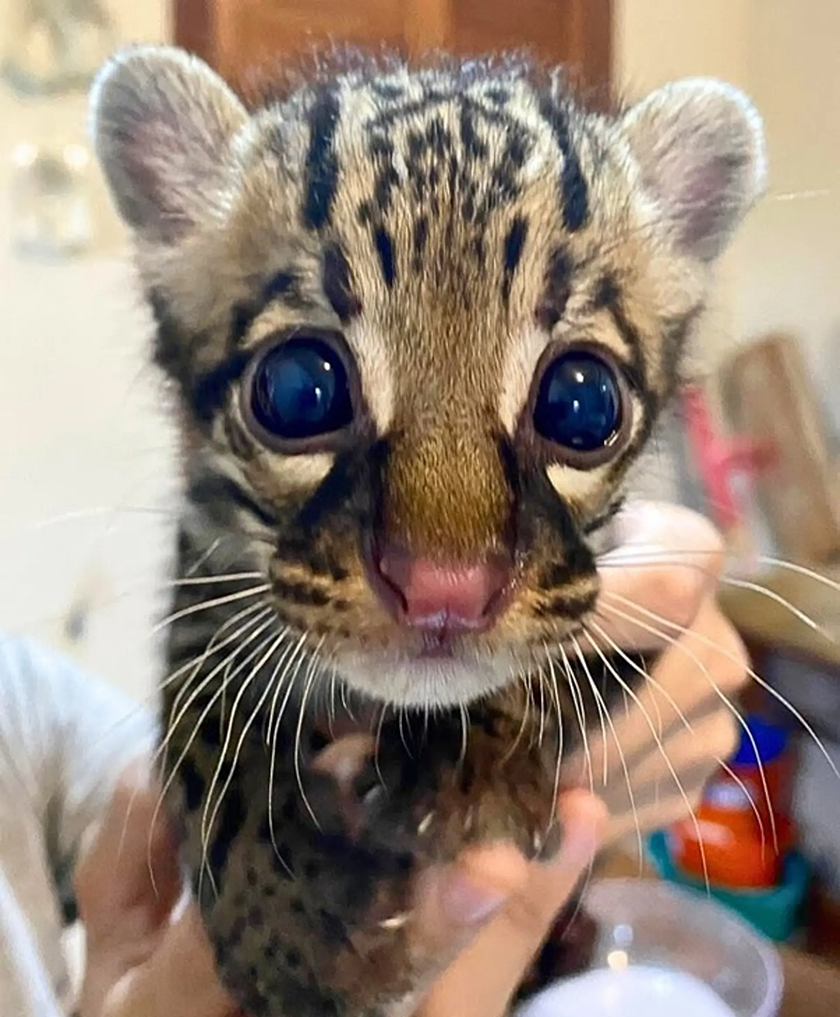 Двухмесячный оцелот по имени Рекс живет в ветеринарном центре в Коста-Рике. Люди нашли его одного, на обочине дороги. Ветеринары надеются, что малыш подрастет, и сможет вернуться в дикую природу. Photograph: International Animal Rescue UK