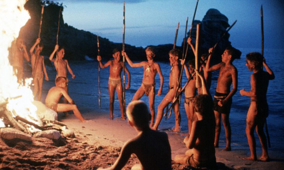 Поразительно, но для перехода к уже откровенно более грубым нравам и закону силы детям потребовалось совсем мало времени. Они начинают буквально деградировать, скатываясь в область низменных желаний и инстинктивного поведения. Маска цивилизованности легко уступает место звериному оскалу, что символически выражается в раскрашивании лиц воинственными, животными узорами. Оказывается, от охоты на свиней до убийства себе подобных мальчиков отделяет всего один шаг, на который они решаются практически без угрызений совести. И вот уже «нормальным» становится убивать тех, кто не вписывается в правила дикарского племени.