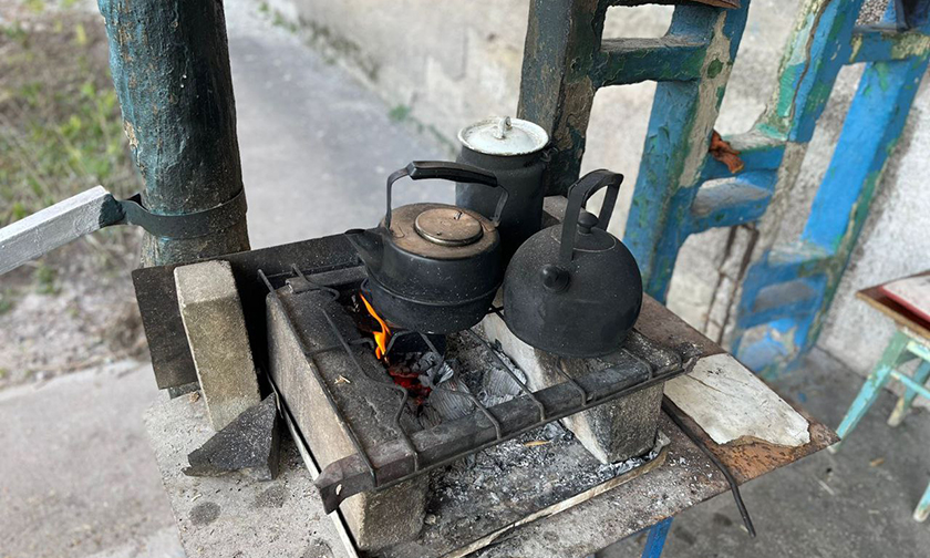 2 марта отключили свет, пропала связь. Потом не стало воды, газ тоже выключили через пару дней. Воду носили из колодцев, которые оказались недалеко от нас, в отеле был мангал во дворе, и жильцы начали палить старую мебель, по очереди греть воду, что-то готовить из еды.