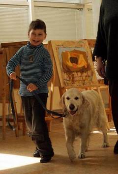 Дима — тоже сложный мальчишка. Диагноз непонятный, врачи только руками разводят. В «Подсолнухе» с ним занимаются дефектолог, логопед и теперь ещё включили занятия с нашими собаками. Мальчик в свои десять лет не говорит, только ухает, вроде совёнка. Его сложно научить выполнять даже простые команды, например, ловить и бросать мячик, хотя, он уже умеет сам есть, одеваться и раздеваться. Терпения с таким ребёнком нужно ужасно много. Но папа рядом. Неизменно приветливый и спокойный…Глядя на него, верится, что всё у Димки будет хорошо. Ну , не может иначе быть.