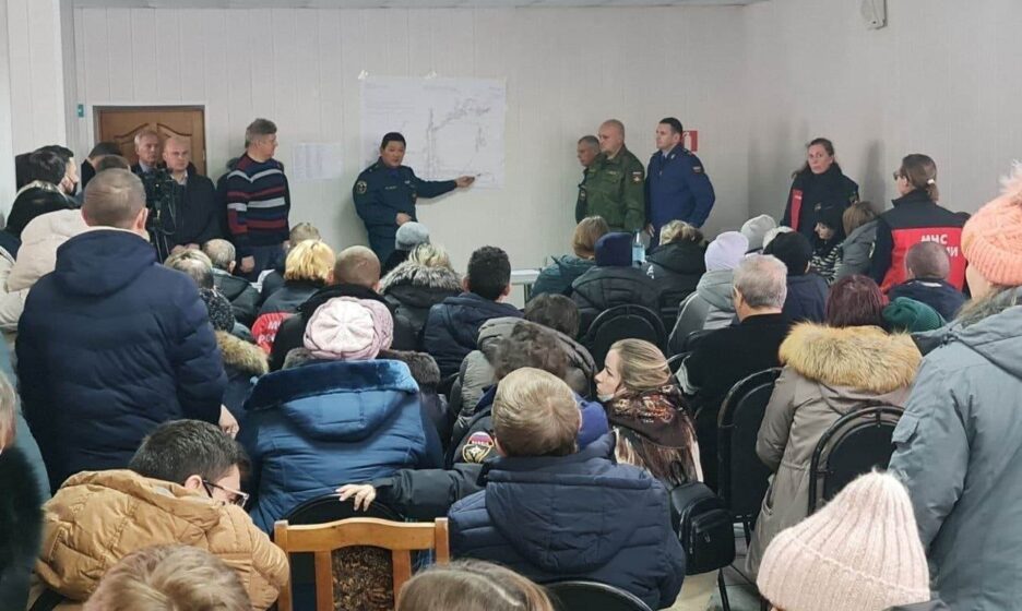 Полпред по Сибири Серышев, губернатор Цивилев, врио главы МЧС Чуприян и замгенпрокурора России Демешин, прилетевший из Москвы, общаются с родственниками погибших. Фото: Сибирь-медиа