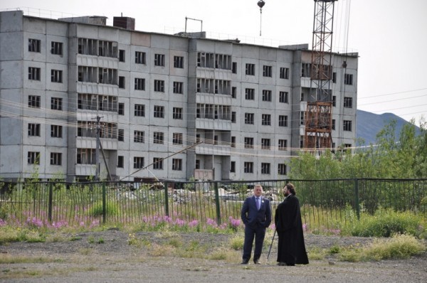 В голове мелькает предательская мысль: как хорошо, что жары мы не дождемся! 16 июля мы прилетели в поселок Депутатский – административный центр Усть-Янского района республики Саха. 17 июля епископ Якутский и Ленский Роман освятил новопостроенный храм преподобного Сергия Радонежского, совершил в нем первую Божественную Литургию и немедленно улетел в Якутск. И вовсе не потому, что не пожелал остаться на престольный праздник – просто самолеты из Депутатского летают далеко не ежедневно, и попасть в столицу республики можно либо 17, либо еще через несколько дней.
