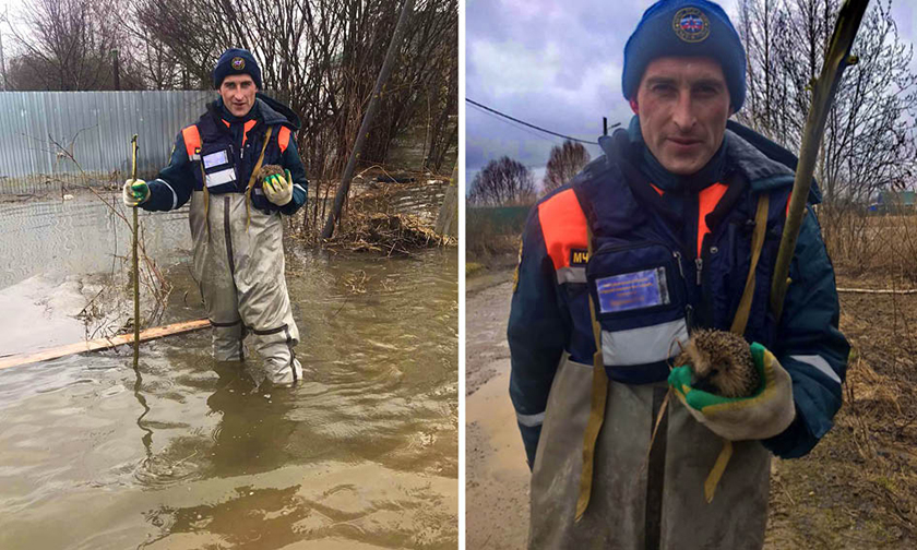 «Во время очередного обхода домов спасатели увидели на клочке земли, отрезанном водой, ежика. Они забрали испуганное животное с собой. Когда взяли его на руки, он даже не пытался убежать и спрятаться, а с большим удовольствием грелся от ладони спасителя», — сообщили в региональном МЧС.