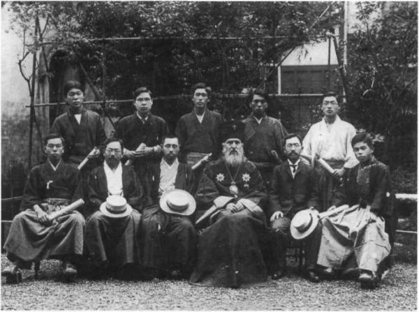 Выпускники Токийской семинарии — фото в память об окончании, июль 1907 г. В центре — святитель Николай. Слева от него — профессор Арсений Ивасава, справа — начальник семинарии Иоанн Сэнума.