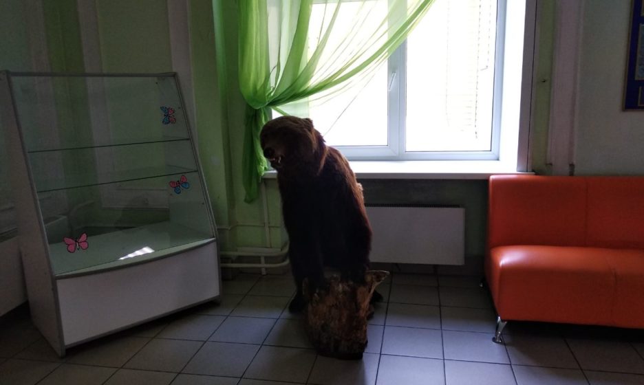 С волонтерами православного молодежного клуба «Призвание» Спасо-Преображенского собора, священником Александром Хорошиловым и учениками студии «Мир фантазии» 70-й гимназии, которые приехали сюда с рождественским концертом, поднимаемся на второй этаж. Вопреки ожиданиям, здесь ничем не пахнет – ни лекарствами, ни едой. Возможно, из-за ремонта, который провели около месяца назад. Вот только чучело медведя, встречающее посетителей на первом этаже, нагнетает тоску, подспудное беспокойство, и вообще своим диковатым видом напоминает, что здесь живут особенные люди.