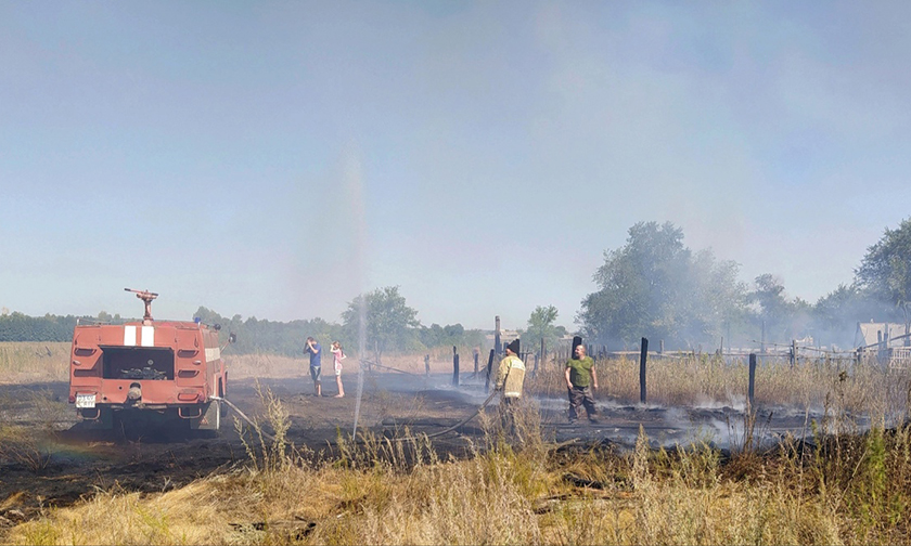 29 августа на окраине села Кряжим Саратовской области в одном из дворов загорелось сено. Из-за ветра огонь перекинулся на сараи и сухую траву.