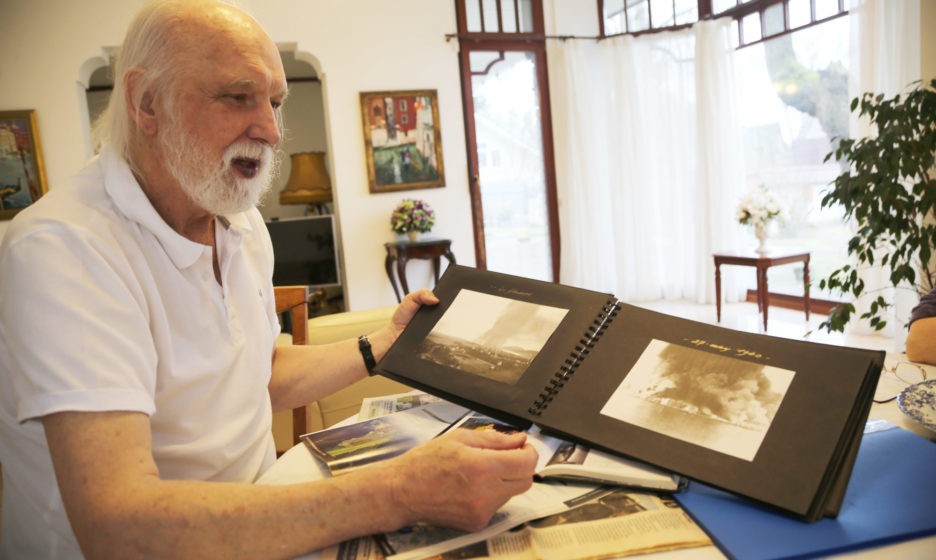 Юрий Фёдорович Сальников показывает альбом с архивными фото Будё. Альбом подарил ему Кнут Сторе