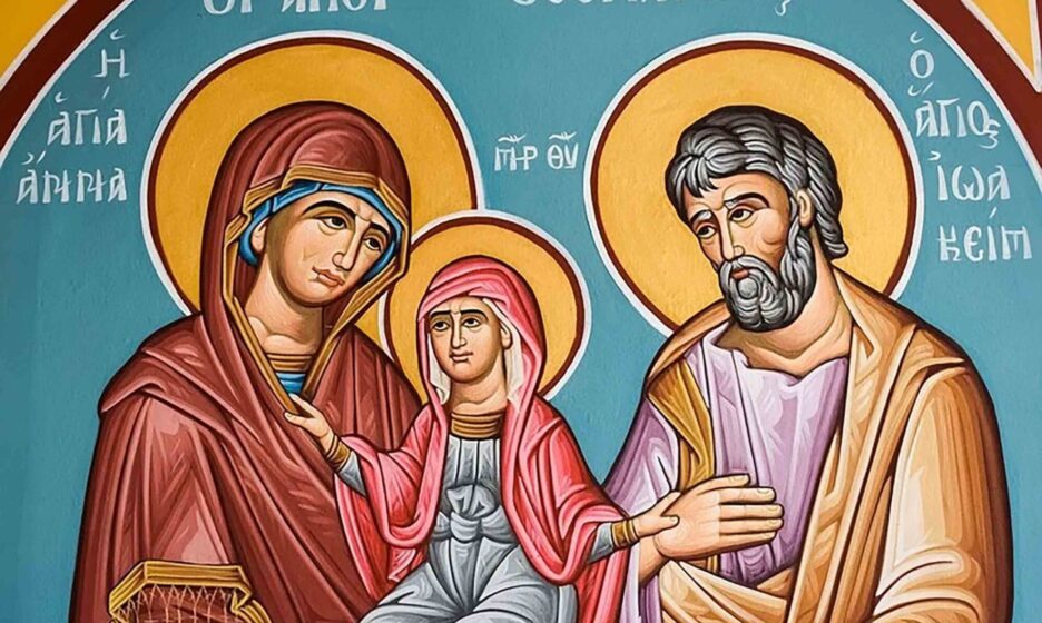 О приснославнии Христовы праведницы, святии Богоотцы Иоакиме и Анно, предстоящии Небесному престолу Великаго Царя и велие дерзновение к Нему имущии, яко от Преблагословенныя дшери вашея, Пречистыя Богородицы и Приснодевы Марии, воплотитися изволившему, к вам, яко многомощным предстателем и усердным о нас молитвенником, прибегаем мы, грешнии и недостойнии. Молите благость Его, яко да отвратит от нас гнев Свой, по делом нашым праведно на ны движимый, и да безчисленныя прегрешения наша презрев, обратит нас на путь покаяния и на стезе заповедей Своих да утвердит нас.