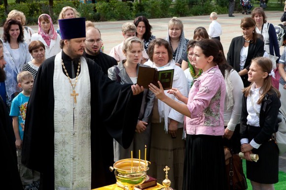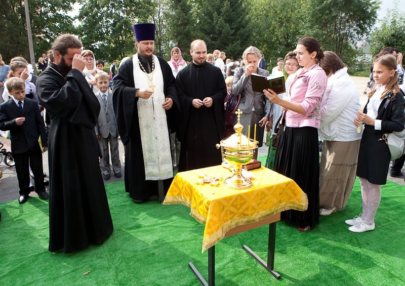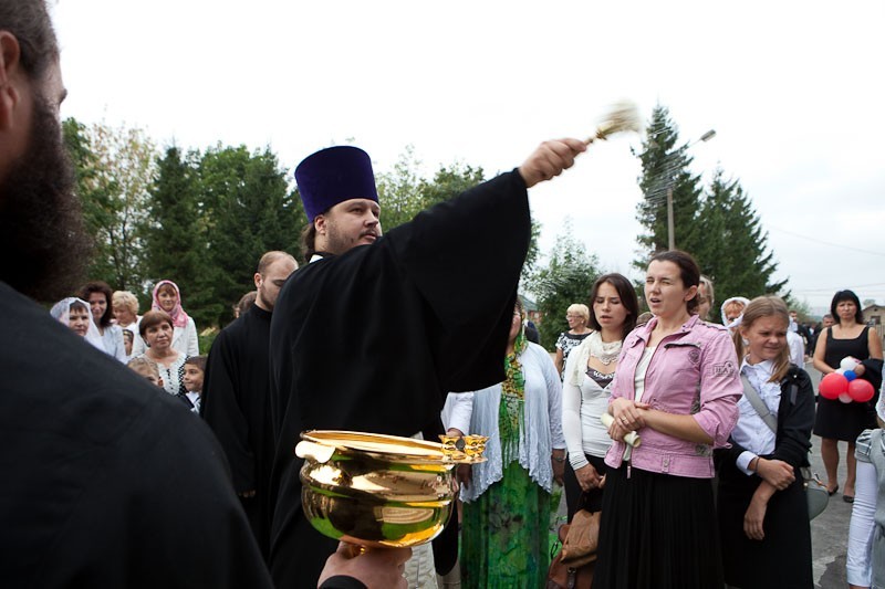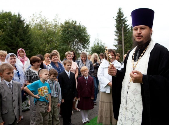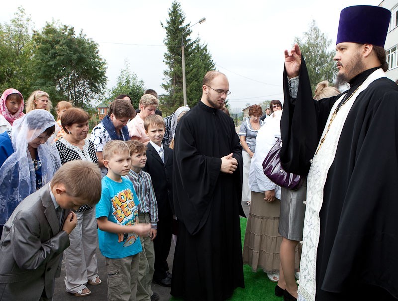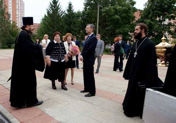 Директор школы Абрамова Жанна Николаевна: «Мы с нашими батюшками и церковью сотрудничаем давно. У нас одна общая задача — формирование нравственности наших детей, поэтому мы уже традиционно не только первого сентября вместе, но и на всех выпускных вечерах, последних звонках. Благословение и наставления наших батюшек дети слушают постоянно. Они очень за нас переживают и желают только процветать, желают благоденствия, всего самого доброго и светлого. И освящение школы будет способствовать нашим общим стремлениям — чтобы наши дети были живы и здоровы, чтобы в их душах жило только добро».