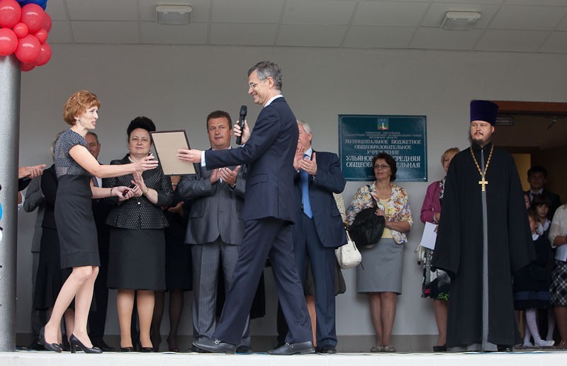 Неоценимый подарок получили подмосковные школьники к первому сентября. При активном участии Уралсиба и Фонда просвещения «МЕТА» всего за два летних месяца была полностью отремонтирована и оснащена по последнему слову техники и безопасности Ульяновская средняя школа Красногорского района Московской области. Перед торжественной линейкой настоятель близлежащего храма Архистратига Михаила отец Михаил Трутнев с клиром совершил чин освящения обновленного здания.