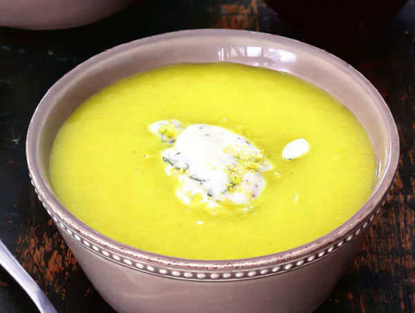 Снимите суп с огня и остудите. Добавьте половину измельченной цедры и лимонного сока, а затем измельчите суп в блендере. Поставьте в холодильник минимум на 2 часа.