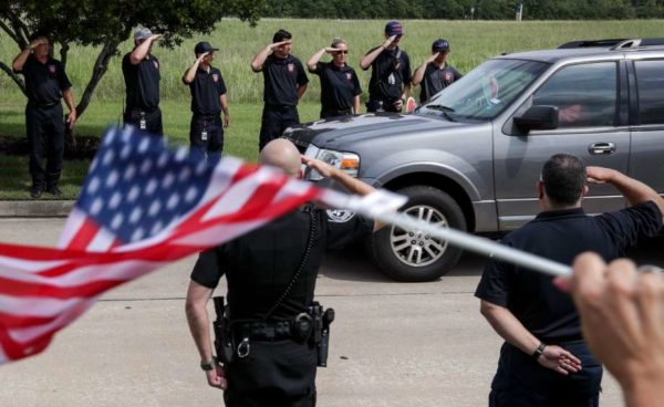 Когда Барнс возвращался домой из стационара, у его дома стояла пожарная машина. Она подняла американский флаг в небо. Коллеги стояли на дороге и отдавали ему честь. Соседи встречали полицейского аплодисментами.