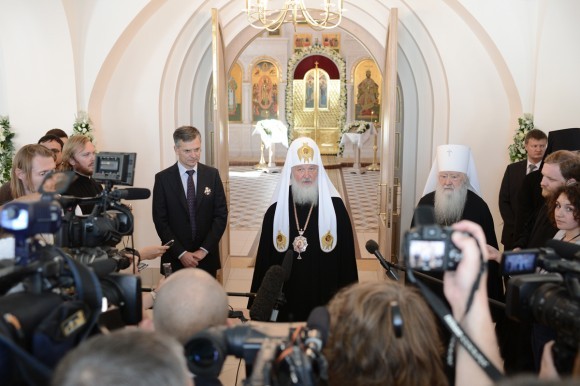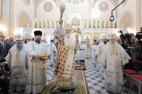 Предстоятель Русской Православной Церкви возглавил чин великого освящения семинарского храма в честь Трех святителей — покровителей богословской науки — и служение Божественной литургию в новоосвященном храме.