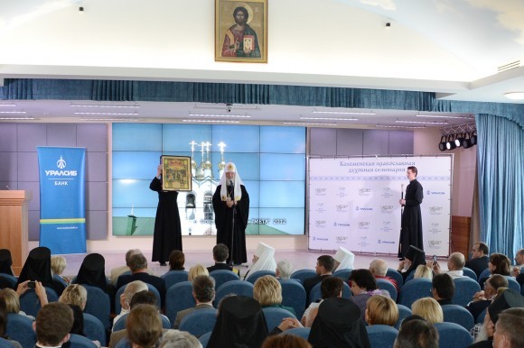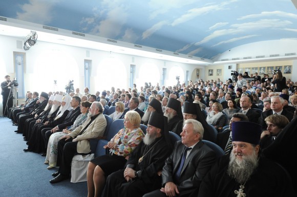 На мероприятии в актовом зале семинарии присутствовали иерархи, участвовавшие в богослужении в храме Трех святителей, председатель Центральной избирательной комиссии РФ В.Е. Чуров, председатель совета директоров ФК «Уралсиб» Н.А. Цветков, представители администрации г. Коломны, благотворители, духовенство Московской епархии, почетные гости, преподаватели и учащиеся Коломенской семинарии.