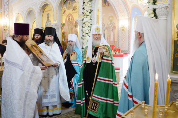 В дар новоосвященному храму Предстоятель Русской Православной Церкви передал Можайский образ святителя Николая Чудотворца.