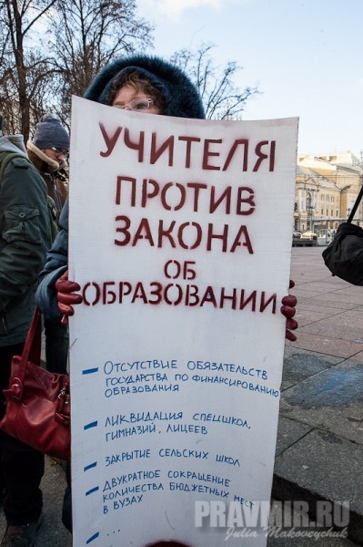 4. 10 ноября в Москве прошел митинг в защиту образования. Педагоги выражали протест против политики Министерства образования и нового закона об образования. Основные претензии: коммерциализация образования, массовое сокращение сельских школ, низкие зарплаты учителей.