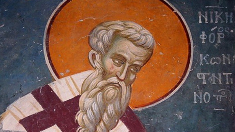 Святитель Никифор был сановником при дворе императрицы Ирины (797–802). Приняв монашество, он прославился благочестием и в 806 году был возведен на патриарший престол. Святитель был ревностным защитником иконопочитания и с воцарением императора-иконоборца Льва Армянина (813–820) в 815 году был сослан на остров Проконнис, где скончался в 828 году.