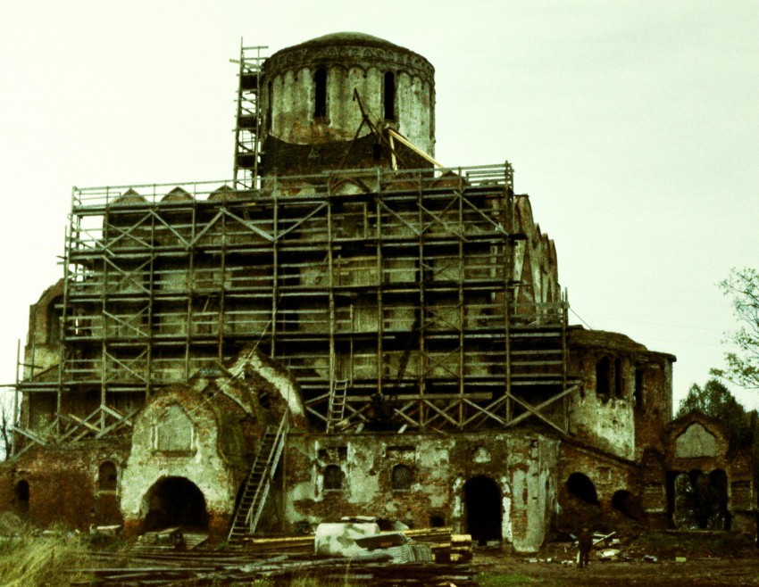 По некоторым сведениям, после войны в нижнем храме сельскохозяйственный институт устроил овощехранилище. В 1962 году взрывами были уничтожены пристройки к собору. Остов здания использовали для тренировок альпинисты. В 1985—1995 годах трестом «Леноблреставрация» была проведена частичная работа по восстановлению собора.