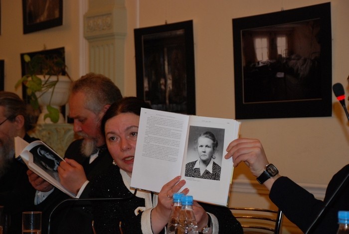 XXI век. Морозный февральский вечер. Зал Культурного центра «Покровские ворота» полон. Здесь собрались люди, которые, быть может, тоскуют о непростом искусстве духовного общения, на которое были способны сестра Иоанна и о. Сергий. И вполне закономерно, что вторая часть встречи была посвящена именно живому общению: слова благодарности; вопросы, обращенные к Брониславе Борисовне Поповой и Геннадию Викторовичу Попову (директору Центрального музея древнерусской культуры и искусства имени Андрея Рублева) о жизни и творчестве сестры Иоанны, о ее работах; вопросы о том, что послужило началом для создания книги и, наконец, чаепитие – доброе общение уже в неформальной обстановке.