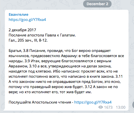 Еще одно полезный канал на каждый день. Здесь публикуются аудиозаписи с отрывками из Евангелия и комментариями к нему священнослужителя. Записи небольшие, всего 5-6 минут, так что их будет удобно слушать в транспорте или по дороге.
