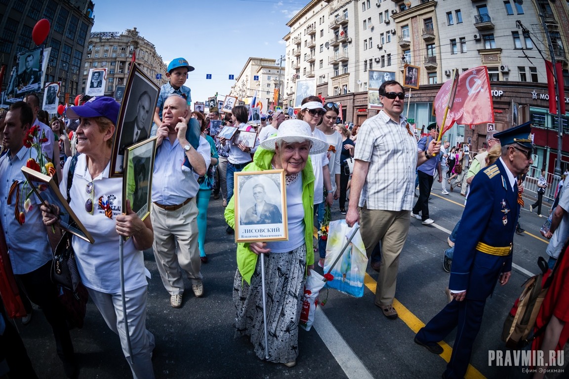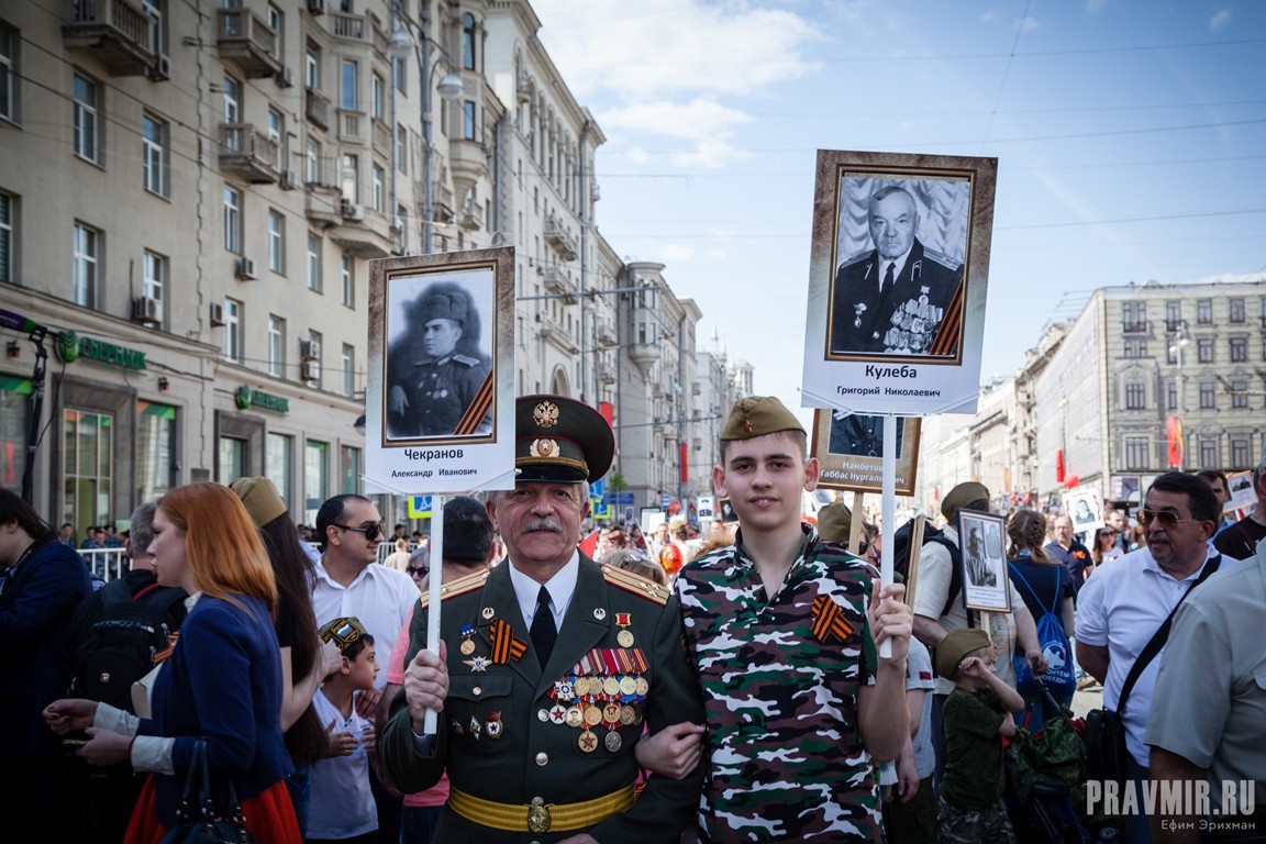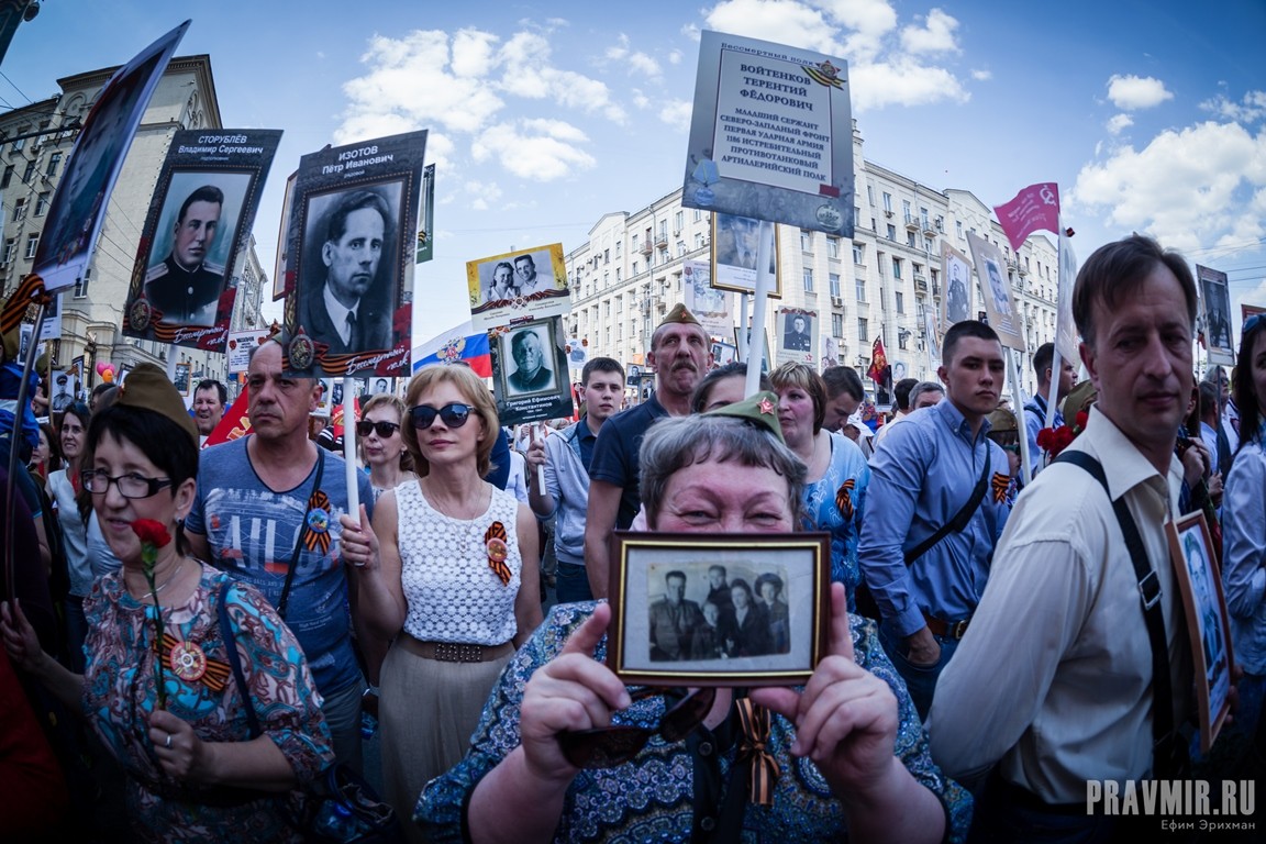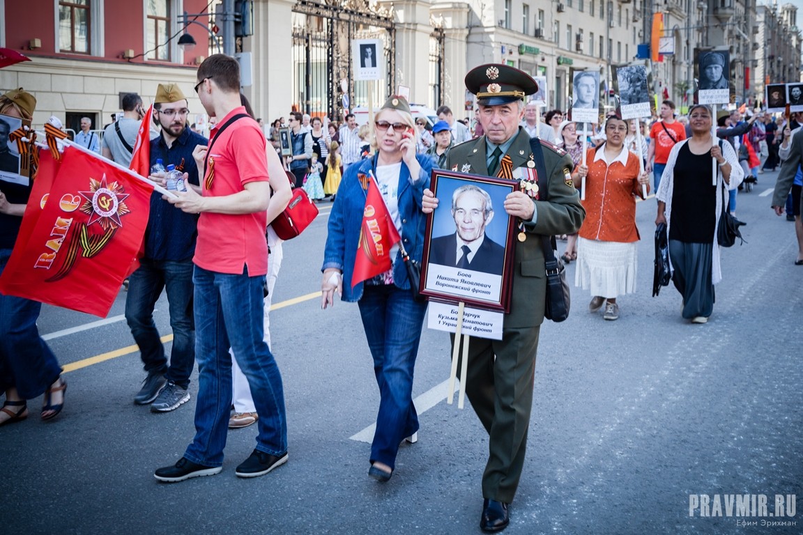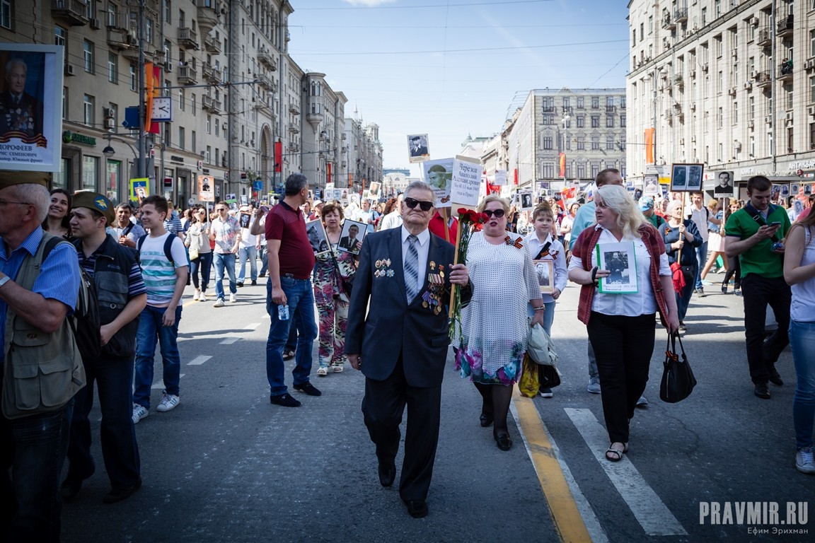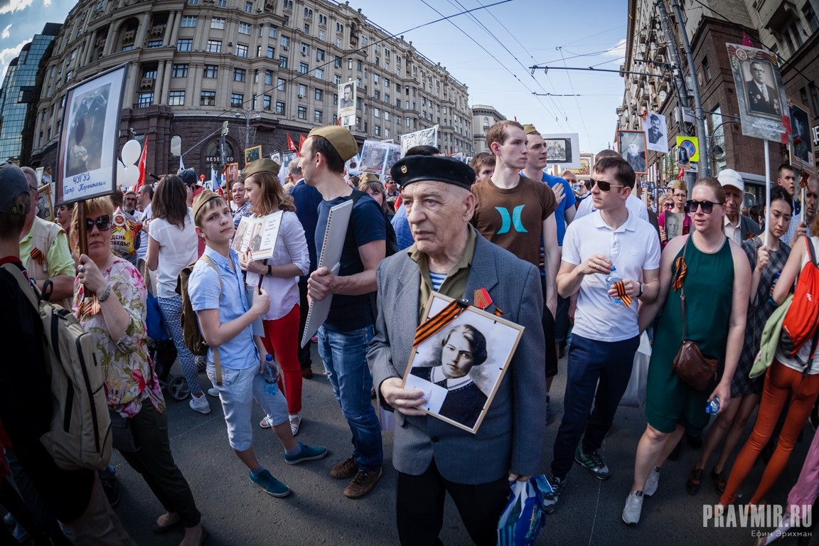 Если в День Победы в прошлом году количество участников акции «Бессмертный полк» в Москве оценивалось как минимум в полмиллиона человек, то в году нынешнем, по данным МВД, шествие в столице собрало более 700 тысяч участников. За тем, как это происходило, следил фотокорреспондент «Правмира».