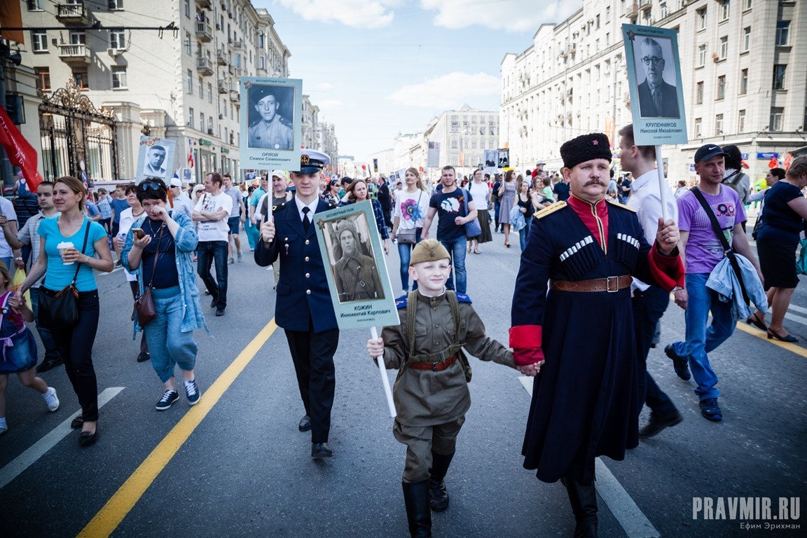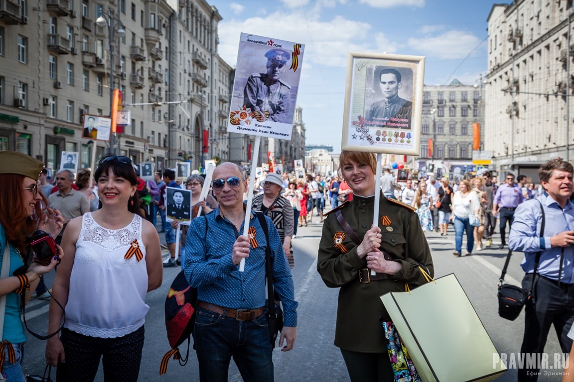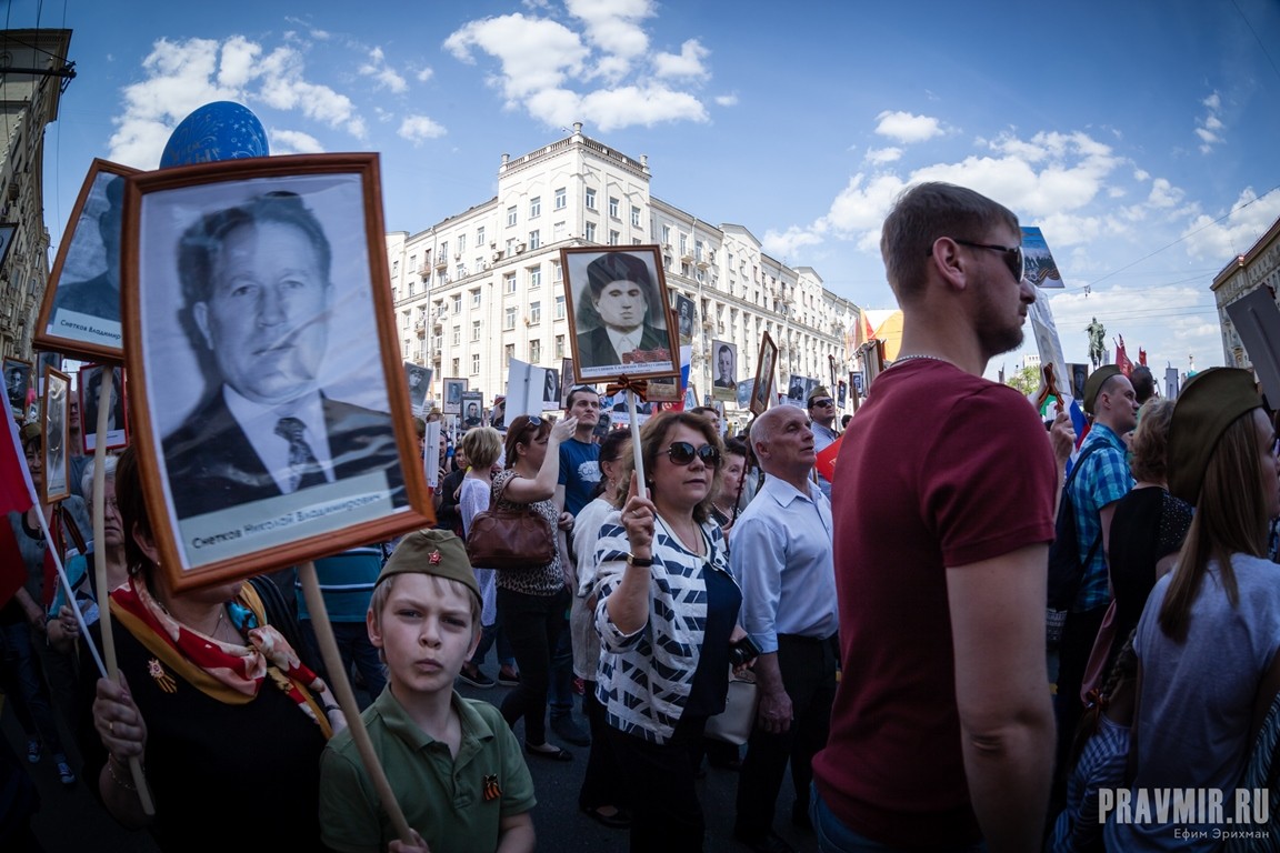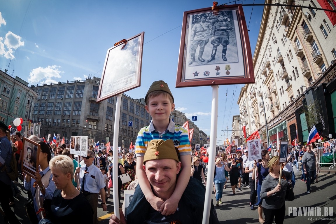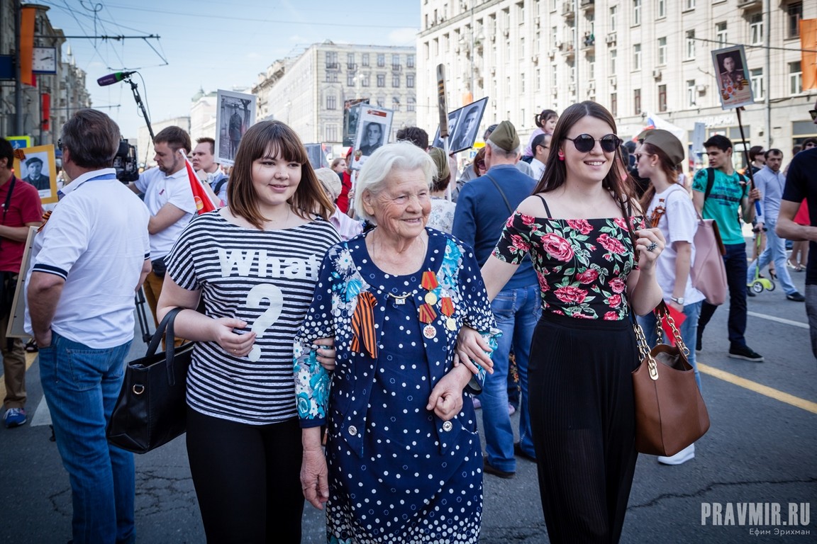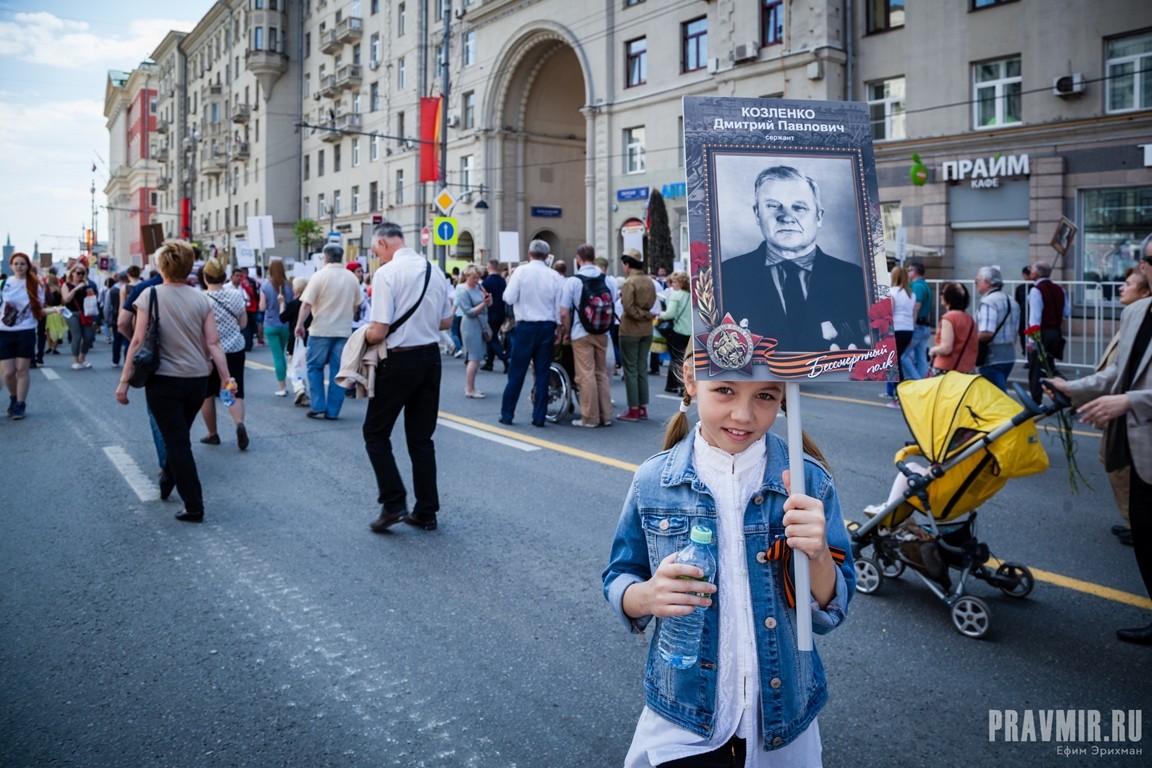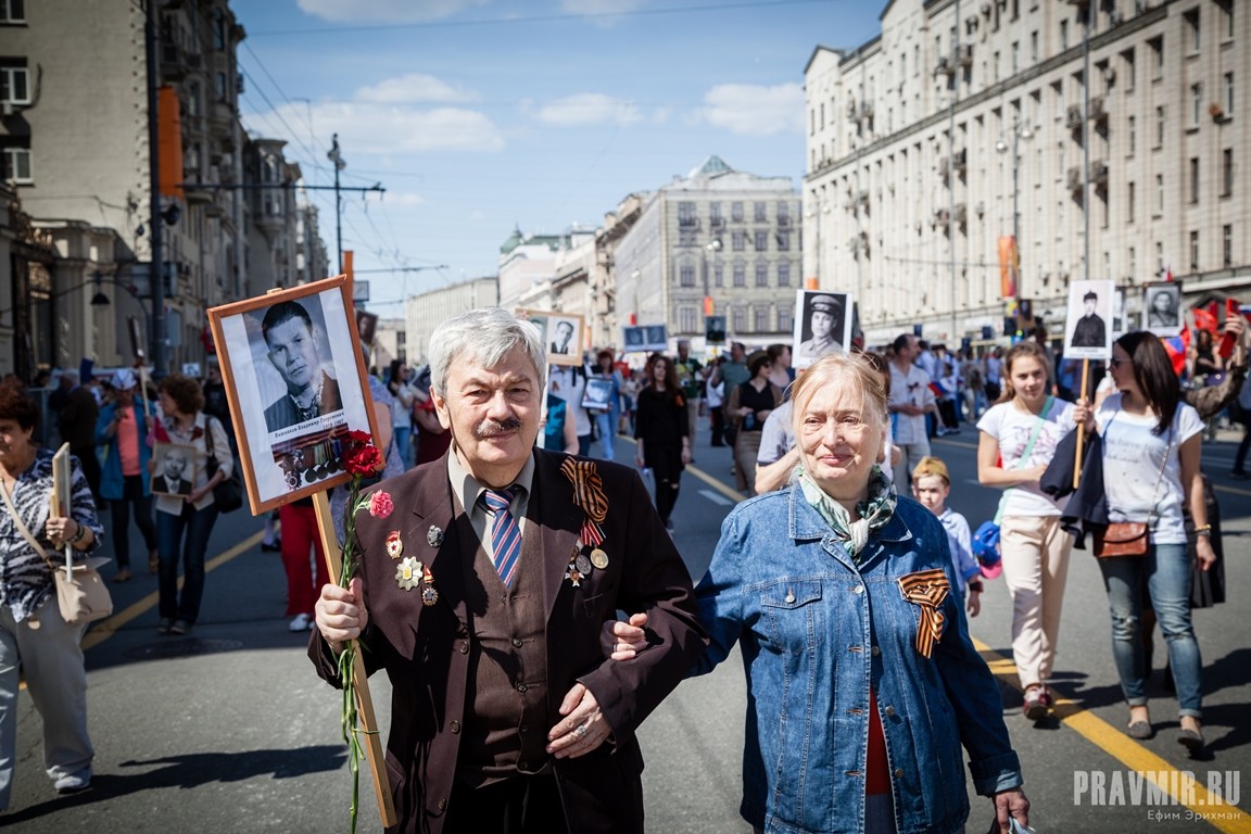 Если в День Победы в прошлом году количество участников акции «Бессмертный полк» в Москве оценивалось как минимум в полмиллиона человек, то в году нынешнем, по данным МВД, шествие в столице собрало более 700 тысяч участников. За тем, как это происходило, следил фотокорреспондент «Правмира».