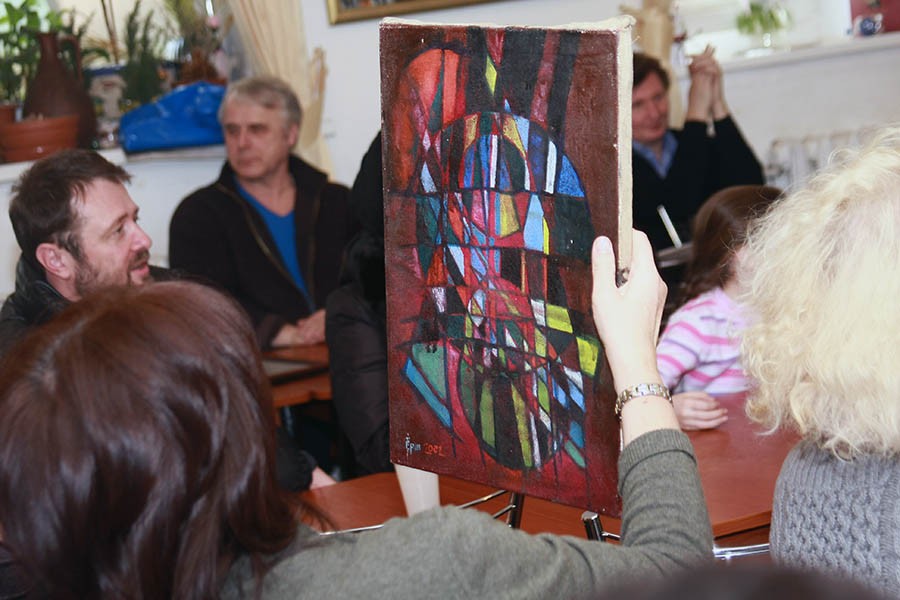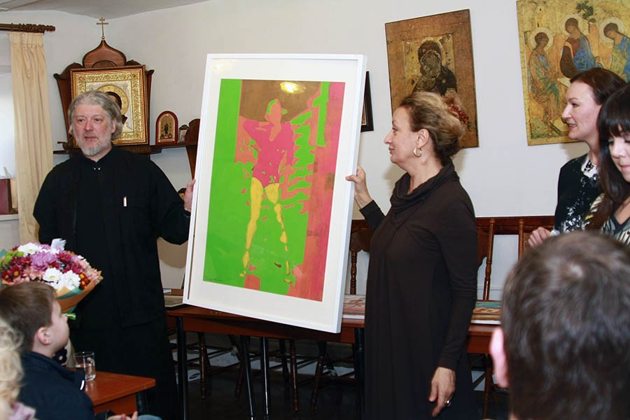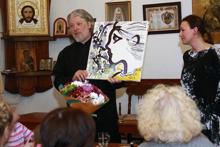 В трапезной храма отец Алексий Уминский провел аукцион, пользующийся неизменным успехом у посетителей ярмарки. На нем были выставлены уникальные лоты – от рисунка Анатолия Зверева до картин, только что нарисованных во дворе храма.