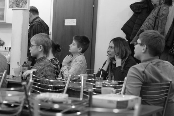 Все началось пять лет назад. Прихожане изредка собирались вместе посмотреть кино в трапезной храма. В сегодняшней пастырской практике – дело обычное. Смотрели поначалу фильмы молодости, потом заслуженные, громкие, новые. Если есть такое пространство для взрослых, почему бы не сделать для детей? Не сразу, но однажды поняли, что детей (до и после 12 лет) тоже стоит разделить. Своей эмоциональностью и жаждой быть услышанными младшие постоянно задавливали подростков, которым необходима пауза, чтобы выбраться из своих раковин…