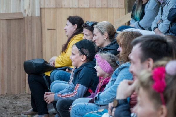 Пока есть время, подхожу к зрителям. Анна в самодельном венке, смущаясь, признается, что здесь в первый раз, и ее привезла подруга. Та очень любит артиста Евгения Ткачука, разузнала про его театр и предложила поехать посмотреть. Лошади в жизни Анны были только в детстве: в украинской деревне пастухи на конях пасли коров. В большом городе, конечно, ни пастухов, ни коров нет, а ностальгия по тем временам иногда проскальзывает.