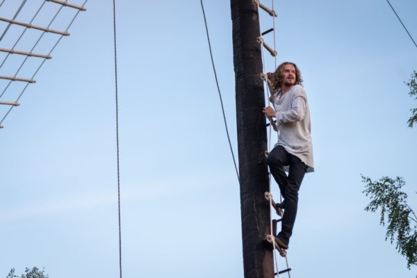 Час назад на спектакле «Гулливер» зрители действительно довольно много передвигались: вдоль по лесной дорожке на площадку у пруда, затем в манеж, потом обратно к костру. Однако в названии прилагательное «передвижной» несет более глубокий смысл: возможность подстраиваться под новую площадку, взаимодействовать с местом, его историей, с тем, что вокруг. Именно тогда словосочетание «природный театр» будет максимально наполнено смыслом. Нечто, похожее, по словам режиссера, на кинопроцесс: когда съемочная группа приезжает на локацию дня за 2-3 до съемок и обустраивается, а точнее, встраивается в среду: